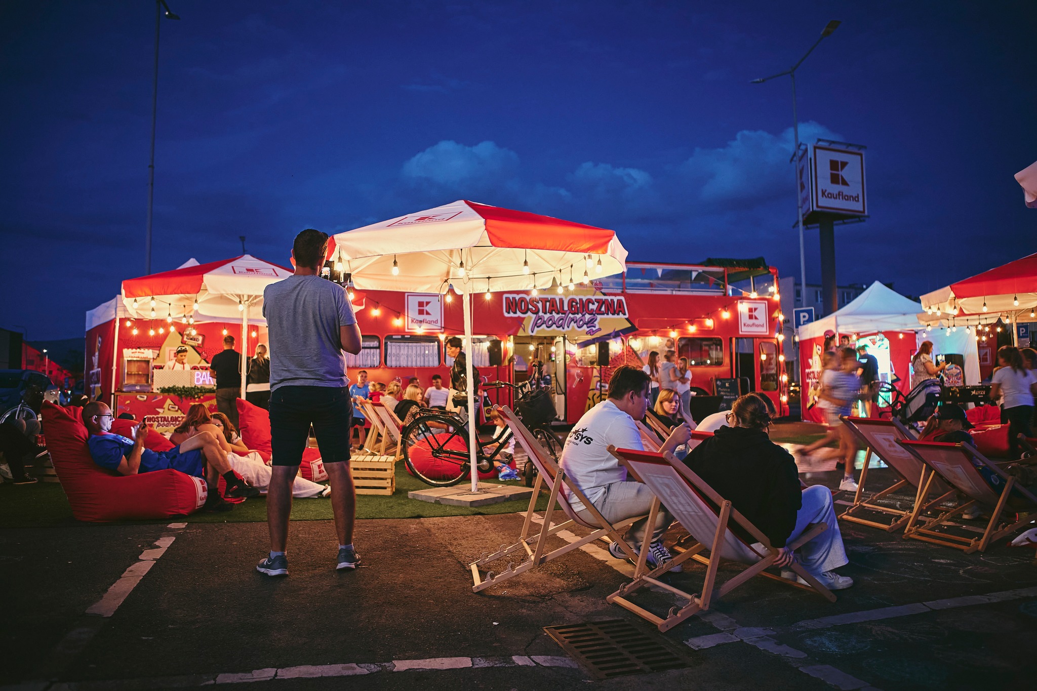 Przez sześć wakacyjnych weekendów czekało na Was sporo atracji: dwupiętrowy nostalgiczny autobus, w którym na pierwszym piętrze mogliście znaleźć przekąski z lat dziewięćdziesiątych i dwutysięcznych, na drugim poszaleć w rytmie przebojów granych przez naszego DJ-a; strefa chillu, gdzie mogliście odpocząć i naładowć baterie; strefa gier z gadżetami do wygrania (bo kto nie lubi wygrywać…?); strefa muzyki na silent disco, w której każdy tańczy w rytm tego, co mu w duszy gra; letnie kino plenerowe, czyli seans w najlepszym towarzystwie, gdzie mogliście obejrzeć prawdziwe polskie hity takie jak “Chłopaki nie płaczą”, czy “Killer”; strefa przekąsek, w której czekały na Was pyszne hot dogi i popcorn.